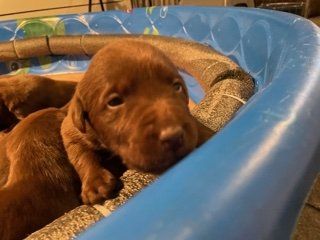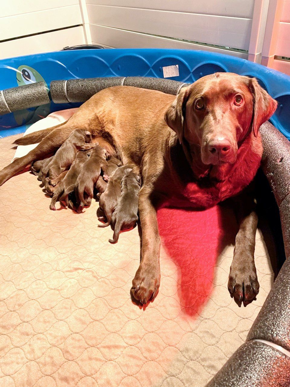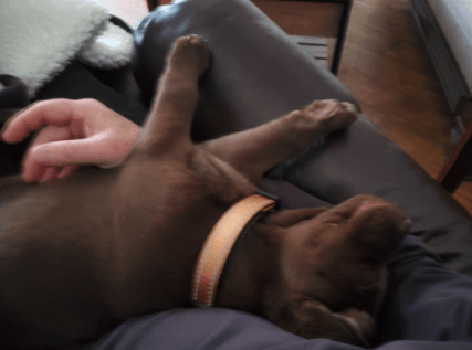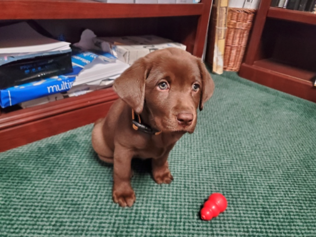 Shiloh is a chocolate Labrador Retriever.